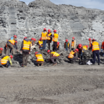 Figure 4. As part of their university education or for research purposes, students and scientists visit the active mining site in Dormettingen. On guided tours they have the possibility of studying the sediment, collecting fossils and taking samples.