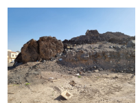 By January 2015, land development started along the NW side of the cone with some landscaping and cut back of the cone (Fig. 14) with significant modification of the cone by October 2016. This stage was accompanied by rubbish dumping and some orchards in the entire western sector of the cone (Fig. 15). By December 2018, the entire western sector of the cone suffered significant landscaping and cut back as well as developing a date orchard and some organized rubbish pits providing clean cliff surfaces suspected to have excellent outcrops (Fig. 16).  By August 2020, a new clearance removed the former rubbish pit but made the cone cut back about 10-15 m, and losing its entire distal section (Fig. 17). This time, despite the significant alteration of the original landform, a functioning orchard guaranteed the relatively tidy appearance of this side of the cone, potentially offering excellent outcrops. About a year later, this situation had changed by removal of the orchard, some clearance and landscaping, apparently an attempt at tourism and geoconservation development (Fig. 18). This situation remained more or less the condition of the cone up to 2023 (Fig. 19). Today, some clearance is apparent, but also, as the land is open to the public, local rubbish dumping has started as well as the gradual collection of communal use of scoria. By now the eastern side of the cone has also been cut back a further 5–10 m, forming a characteristic cliff side deeply cut into the core of the cone and losing its original morphology. Similarly, an articulated circular zone has been developed on the western edge that has left only the core of the former tuff ring. In the crater zone digging activity made the cone’s original crater morphology hard to recognize, leaving behind few segments that can be recognized probably only by trained experts. Interestingly, the cone's northern side where a small lava dome and some short lava flow poured out remained intact, probably due to its hard nature which made it difficult to blast it off. The cone now has its heavily modified core complex only.