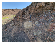 Figure 21. Accidental lithic-rich lapilli tuff and tuff breccia in the NW sector of the cone. Note the granite clasts and fractured metavolcanics from the basement.